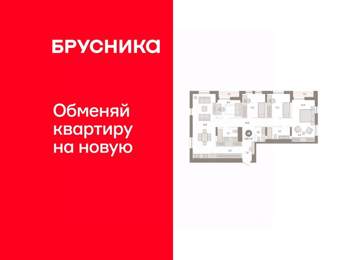 Просторная 4-комн. квартира с предчистовой отделкой в ЖК "Республики 205" на 17 этаже. Общая площадь: 124.71 кв.м., жилая: 46.8 кв.м., площадь просторной кухни-гостиной: 28.8 кв.м. Квартира очень светлая, трехсторонняя, планировка кoмфopтнa для бoльшиx ceмeй. В квартире две лоджии, два совмещенных санузла. Высота потолков 2.6 м.