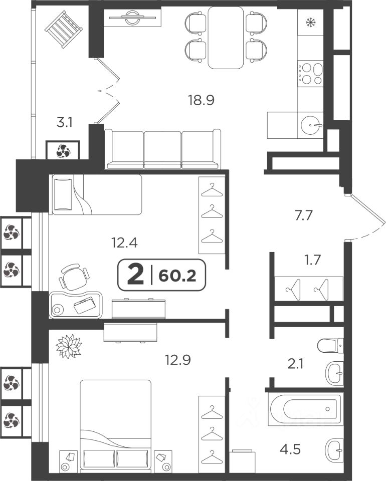 Продаётся 2-комнатная квартира в строящемся доме (ГП-1, секции 3, 4), срок сдачи: I-кв. 2026, общей площадью 60.28 кв.м., на 7 этаже. ЖК "Симфония" - новый проект комфорт-класса в центре Тюмени, будет расположен в пределах улиц Харьковская - Холодильная - Мельникайте."Симфония" - это комплекс из 6 домов переменной этажности в монолитно-каркасном исполнении, отделка фасадов выполнена с применением клинкерного кирпича и по технологии "мокрый фасад", что придает домам стильный и современный вид. Украшением района станет архитектурная концепция и подсветка домов ЖК "Симфония".Охраняемая закрытая территория комплекса с круглосуточным видеонаблюдением, двор без машин, все дома объединены пешеходным бульваром, на 1 этаже предусмотрена торговая галерея, детские площадки с многоуровневыми игровыми комплексами, воркаут зоной с безопасным прорезиненным покрытием.Бесплатный Wi-Fi во дворе, удобный вход в подъезды для маломобильных граждан и мам с колясками, колясочные, лапомойка для домашних питомцев, дизайнерские холлы подъездов, кладовые в подземном паркинге - все это будет реализовано в новом ЖК.Все квартиры с кухнями-гостиными, гардеробными, для любителей проводить время на свежем воздухе - квартиры с террасами.