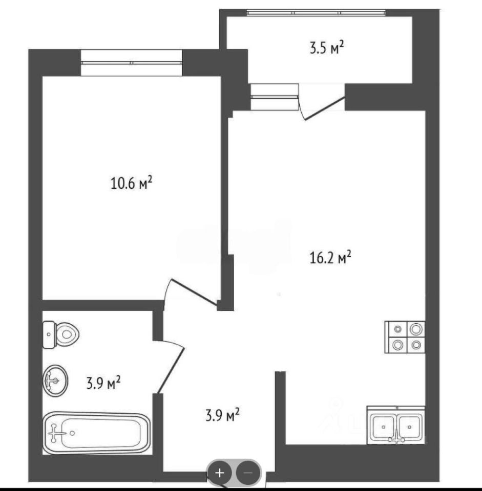 Просторная 1 квартира или евродвушка площадью 33,5 м2 в районе Тюменской слободы города Тюмени.