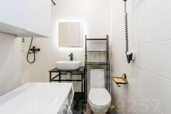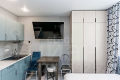 В квартире выполнен ремонт с использованием качественных материалов. В санузле стены и пол выложены плиткой, в коридоре пол тоже выложен плиткой. В комнате ламинат, стены под покраску. Потолки натяжные с точечным освещением. Приятный свежий ремонт в пастельных тонах.