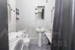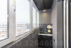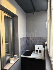 Лоджия обустроена под кухню, установлен теплый пол. Санузел совмещенный.