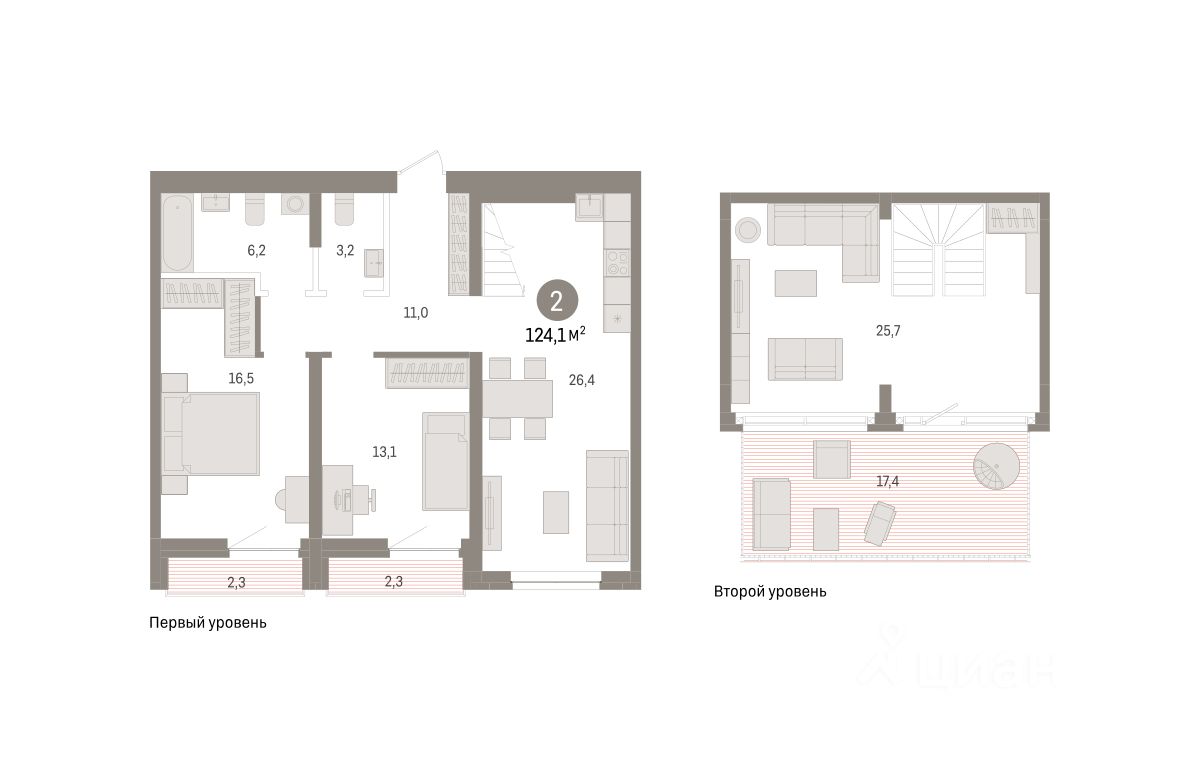 Квартира с кухней-гостиной и двумя спальнями в жилом районе "Речной порт". Особенности планировки: летняя кухня на крыше, свободная планировка, терраса на крыше.