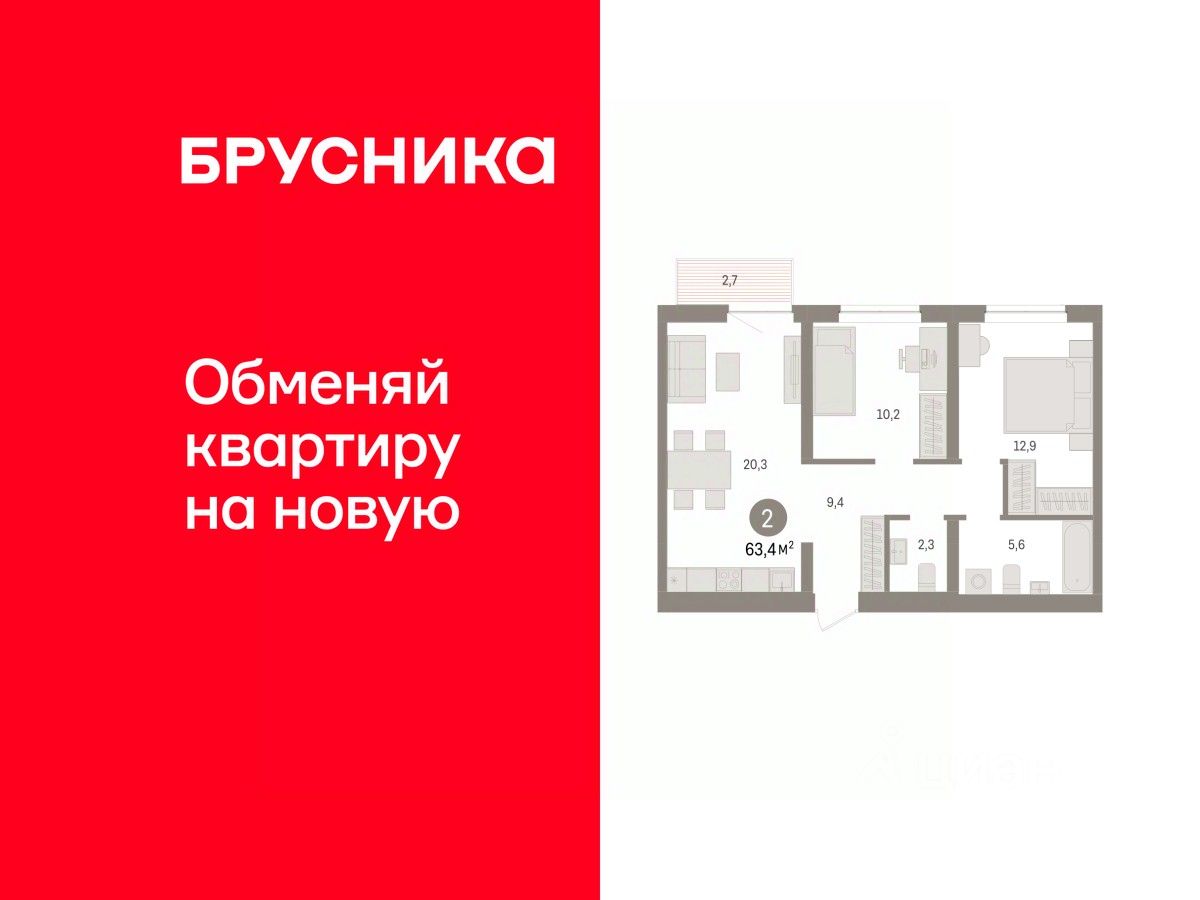 Квартира с кухней-гостиной и двумя спальнями в жилом районе "Речной порт". Особенности планировки: балкон, предчистовая отделка.