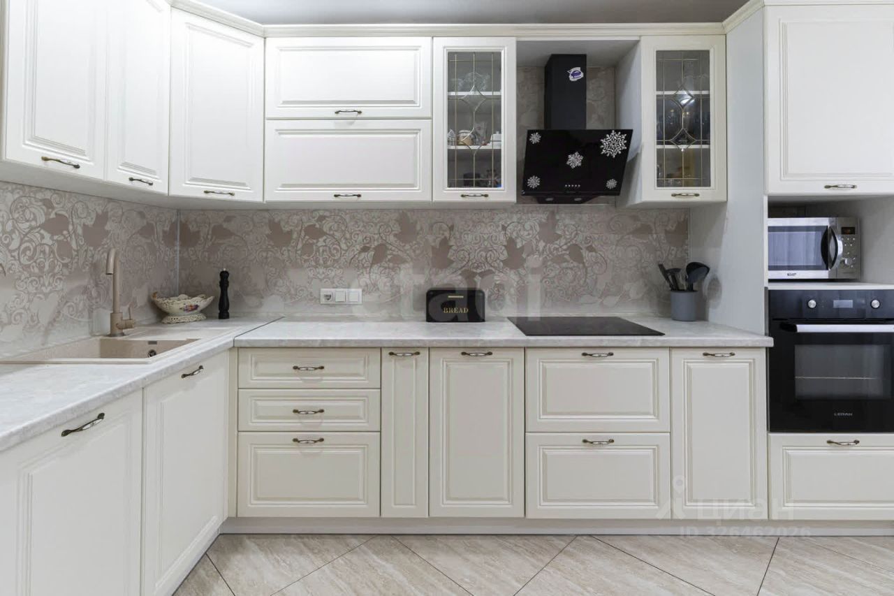 В ней просторная кухня (14 м.кв) - удобно встретить гостей и разместиться большой компанией. В кухне сделан ремонт, новый современный кухонный гарнитур со встроенной бытовой техникой (посудомоечная машина, духовой шкаф, варочная поверхность, вытяжка) - мечта любой хозяйки.