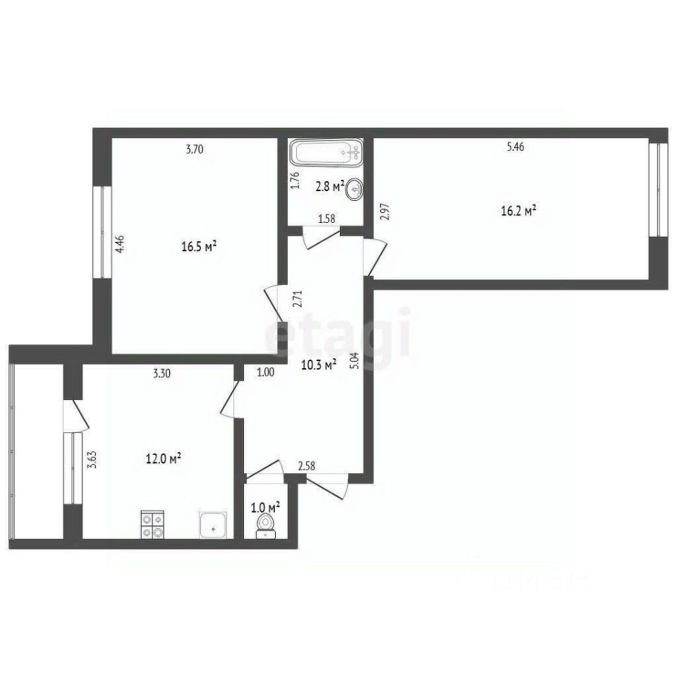 Продается отличная квартира формата 2+ в кирпичном доме, общей площадью 58.6 кв метров во Втором микрорайоне!