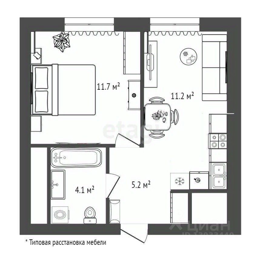 Обратите внимание на удобную планировку квартиры при площади 32,2 кв.м, площади помещений продуманы для комфортной растановки мебели: кухня 11.2 кв. м., спальня 11,7 кв.м., довольно просторная прихожая 5,2 кв.м., сан.узел 4,1 кв.м. Квартира очень теплая и тихая благодаря горизонтальной разводке отопления и современным окнам. Показания счётчиков передаются автоматически (телеметрия). Дом сдается в 4 квартале 2025 года.