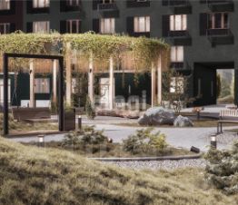 Двор комплекса закрыт от машин, но открыт для приятных вечеров. Внутри амфитеатр с подсветкой, пергола с гирляндами и скамьи, сделанные специально для этого проекта. Будет вестись видеонаблюдение.