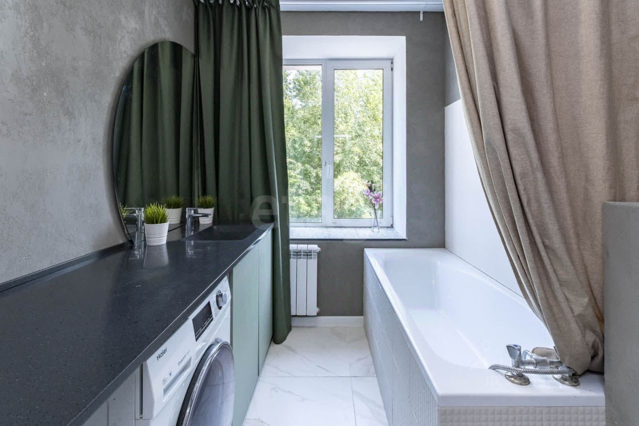 Обратите внимание , что в ванной комнате окно , что дает много света и уюта . А так же французский балкон , который дает определенного шарма квартире .