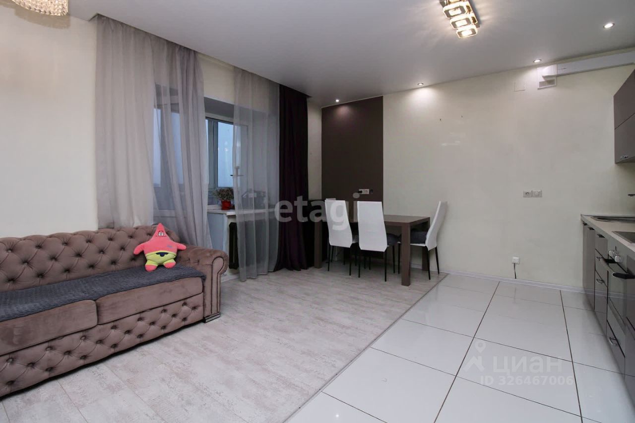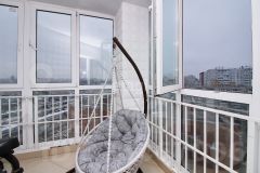 Квартира евро 1-ка, включает в себя большую кухню-гостиную с великолепным балконом, оборудованным панорамным остеклением, откуда открывается потрясающий вид на город. Интерьер выполнен в приятных тонах, современный ремонт. При входе расположен большой вместительный шкаф-купе. В квартире есть просторный совмещенный санузел.