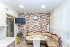 В интерьере использованы только дорогие и качественные строительные материалы, что подчеркивает высокий статус жилья. Просторная гостиная с большим окном наполняет помещение естественным светом и открывает захватывающий вид на город. Здесь Вы сможете наслаждаться утренним кофе, любуясь восходом солнца, или проводить вечера в компании друзей.