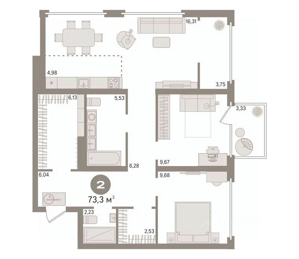 Продается 2-комнатная квартира площадью 73,3 кв.м. в жилом районе "Речной порт". Квартира с предчистовой отделкой. Это наиболее удобный формат. Все грязные, пыльные, шумные работы уже выполнены: залита стяжка с шумо- и гидроизоляцией, разведена электрика и слаботочка.
