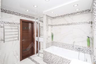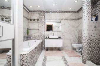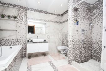 -Большая уборная комната совмещает в себе ванну и душевую.