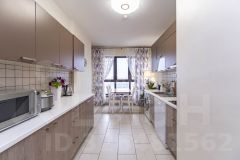Кухня с панорамными окнами и прекрасным видом на город оборудована встроенной техникой, создавая идеальные условия для приготовления любимых блюд.