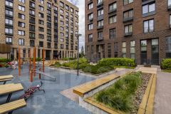 Цветовая гамма фасадов и общественных мест представлена в теплых оттенках.
