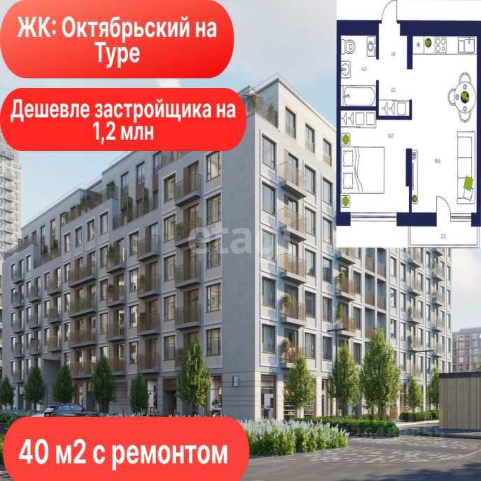 Продается 1+ С РЕМОНТОМ от застройщика в престижном жилом комплексе "Октябрьский на Туре" от компании Брусника!
