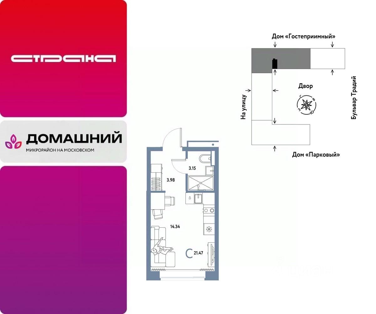 Продается 1комнатная квартира на 2 этаже от застройщика Страна Девелопмент. Площадь квартиры 21,47 кв. м.