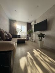 Современный интерьер в светлых тонах, мебель и техника в отличном состоянии;