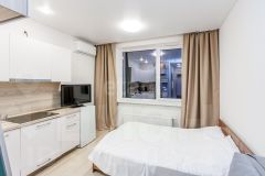 К продаже предлагается уютная студия в новом Жилом Комплексе Домашний. Квартира с хорошим современным ремонтом: на полу ламинат, натяжные потолки с точечным освещением, кондиционер, санузел в красивом кафеле. Квартира - полностью подходит для тех, кто ищет вариант купить и сразу заехать жить. При продаже остается практически все: кухонный гарнитур с варочной поверхностью и вытяжкой, компактный холодильник, кровать, стол. Жилой комплекс Домашний наполнен шикарными аллеями для прогулок, современными детскими площадками и закрытыми дворами. Детский сад и школа рядом. В шаговой доступности множество магазинов.