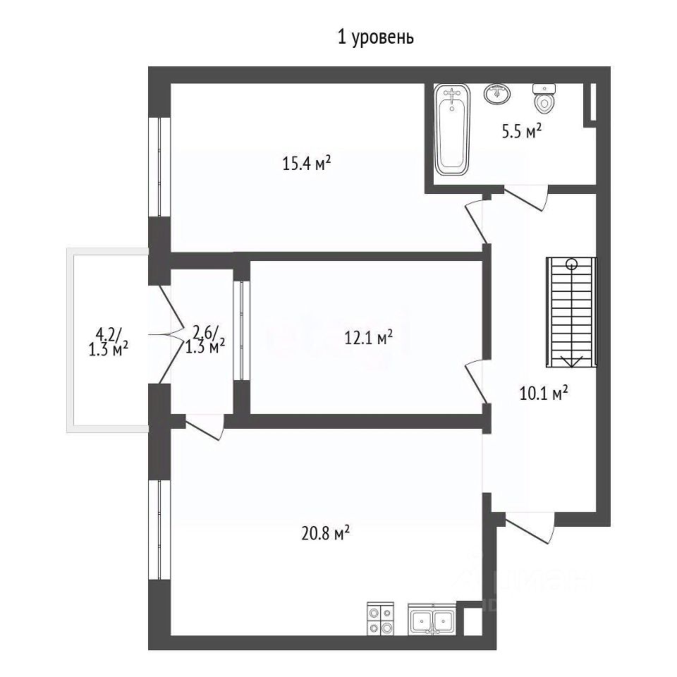 балкон - 4,2 кв.м.,