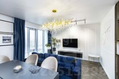 - 74, 9м² свободы и стиля ( большая кухня-гостиная, спальня, детская комната, гардеробная и 2 с/у) с дизайн -ремонтом по мотивам фильма "Жить жизнь"