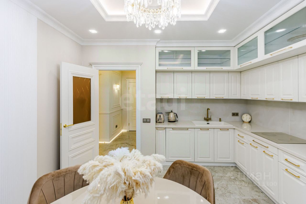 В интерьерах выполнен качественный ремонт по дизайн-проекту с применением долговечных материалов, а квартира полностью укомплектована мебелью и бытовой техникой премиум-класса, что позволяет заехать сразу после покупки.
