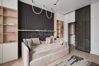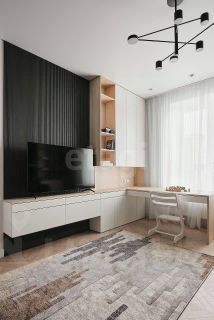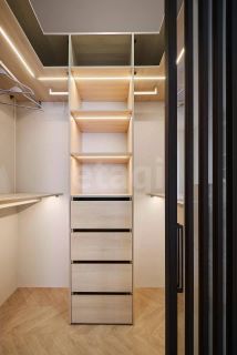 В каждой комнате предусмотрены разные сценарии подсветки, шторы-блэкауты. Вся мебель сделана на заказ. Мебель в спальне привезена из Италии и выполнена из натурального дерева. Вся сантехника и смесители только известных европейских производителей.