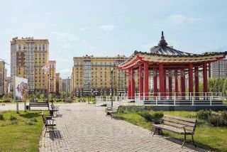 Просторная закрытая территория ЖК, много детских площадок, спортивных кортов, достаточно места для парковки автомобилей.