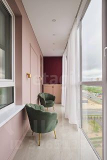 Также в квартире предусмотрен большой вместительный хозяйственный шкаф, выполняющий функцию небольшой кладовки, где спрятана стиральная машина, а также весь постирочный и хозяйственный инвентарь. Просторная лоджия с панорамными окнами 9 кв.м. с зоной отдыха и вместительными местами хранения.