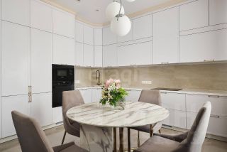Зона кухни полностью укомплектована бытовой техникой, включая посудомоечную машину, микроволновую печь, большой двухдверный холодильник, также установлены фильтры питьевой воды. В ванной комнате установлен большой водонагреватель. В гостиной и одной детской комнате телевизоры диагональю 65.