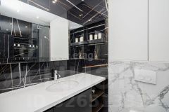 Микроклимат в жаркие дни поддерживают 4 кондиционера, в спальне установлен бризер (приточная вентиляция с очисткой, свежий воздух с закрытыми окнами), теплые полы уложены в прихожей,на кухне, в санузлах и балконе, по всей квартире многоконтурное освещение.