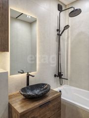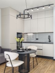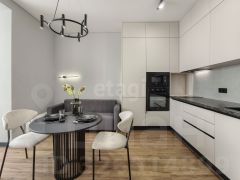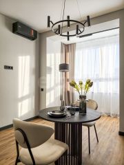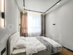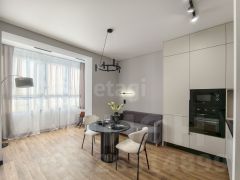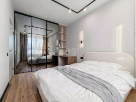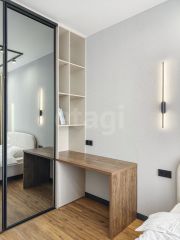 Квартира отличается простором, современным дизайном и панорамными видами на город и озеро.