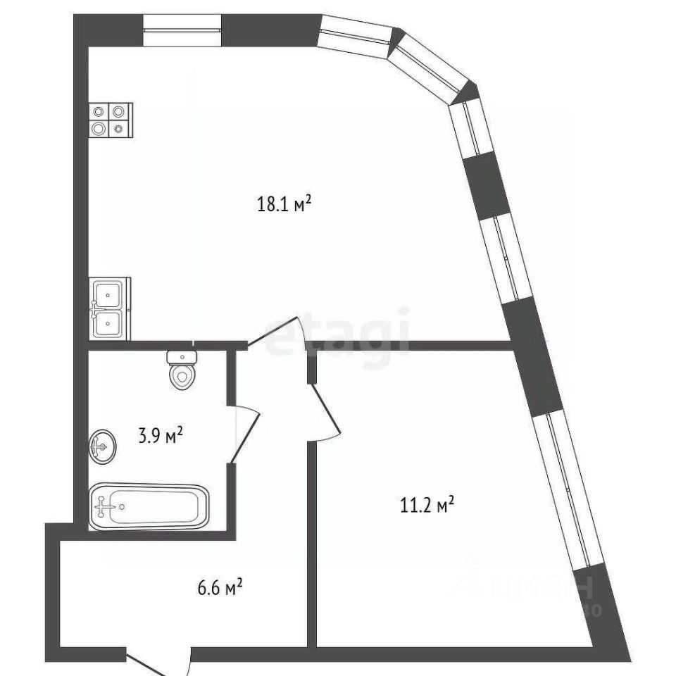 Планировка: кухня-гостиная 18 м², спальня 11,2 м2, Панорамное остекление по всей квартире.