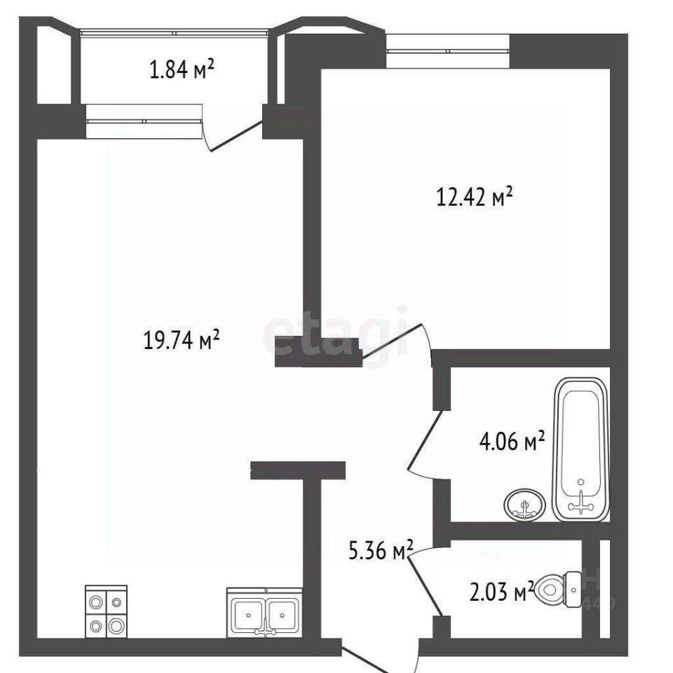 Просторная квартира формата 1+ площадью 42,5 м2 расположена на 14 этаже в новом современном жилом комплексе "Кедровый берег" на самом берегу Туры!
