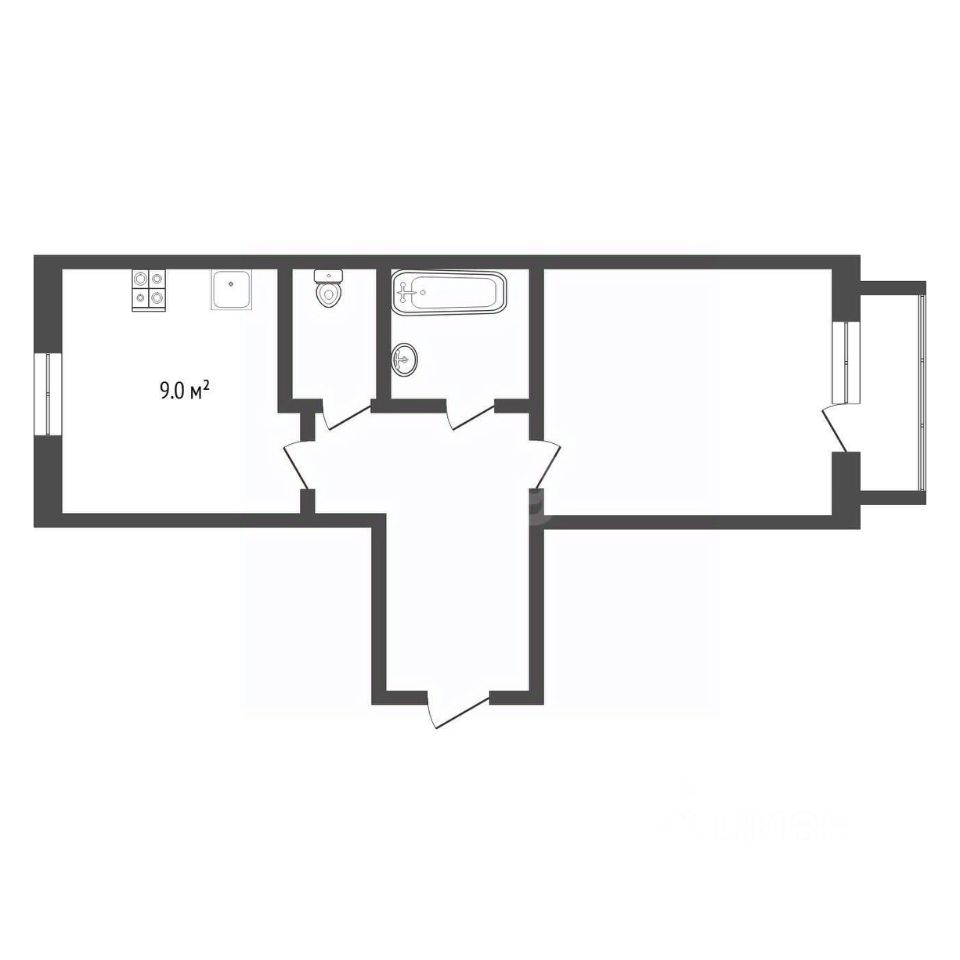 Удобная планировка-"распашонка" делает пространство функциональным и комфортным для проживания.