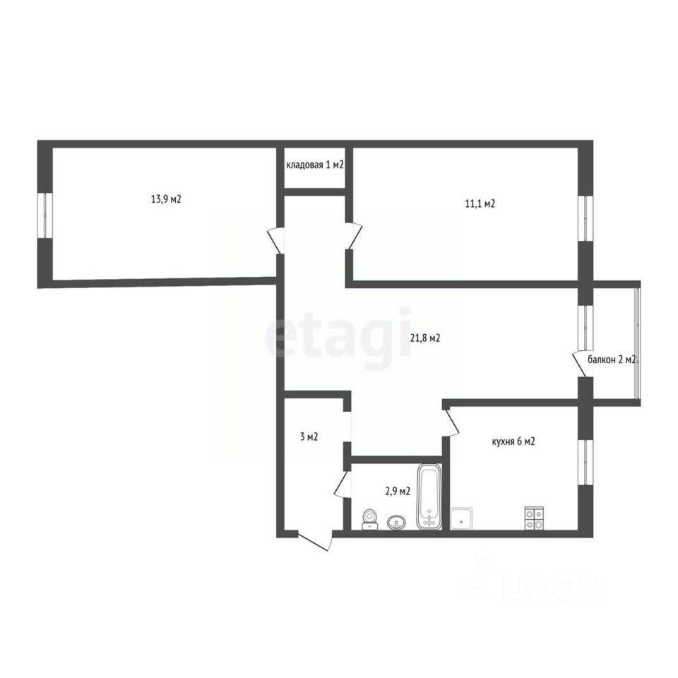 58,5 м²