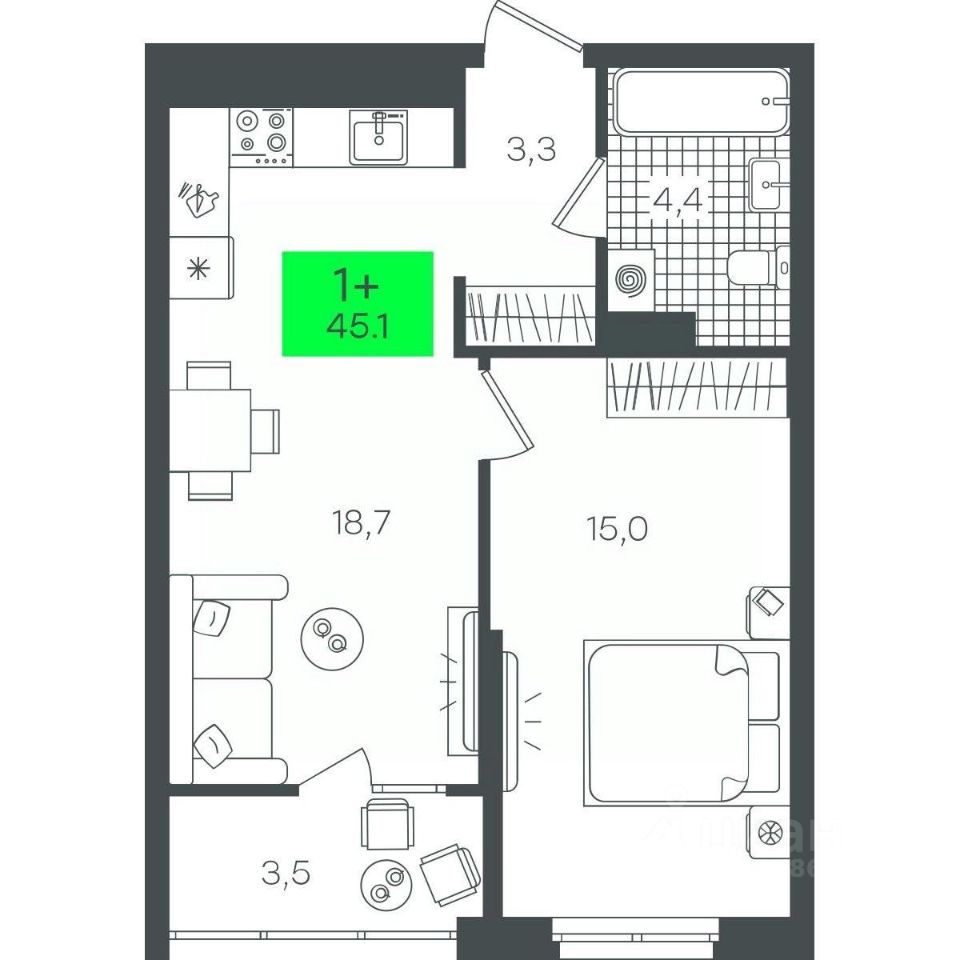 Продаётся 1-комнатная квартира в строящемся доме (3-В6.1 (Малкова, 15)), срок сдачи: III-кв. 2026, общей площадью 45.13 кв.м., на 18 этаже. Компания 4D приступила к строительству нового жилого комплекса "Гранд квартал". Новый ЖК находится в зеленой зоне Калининского района, южнее микрорайона Тюменская слобода.