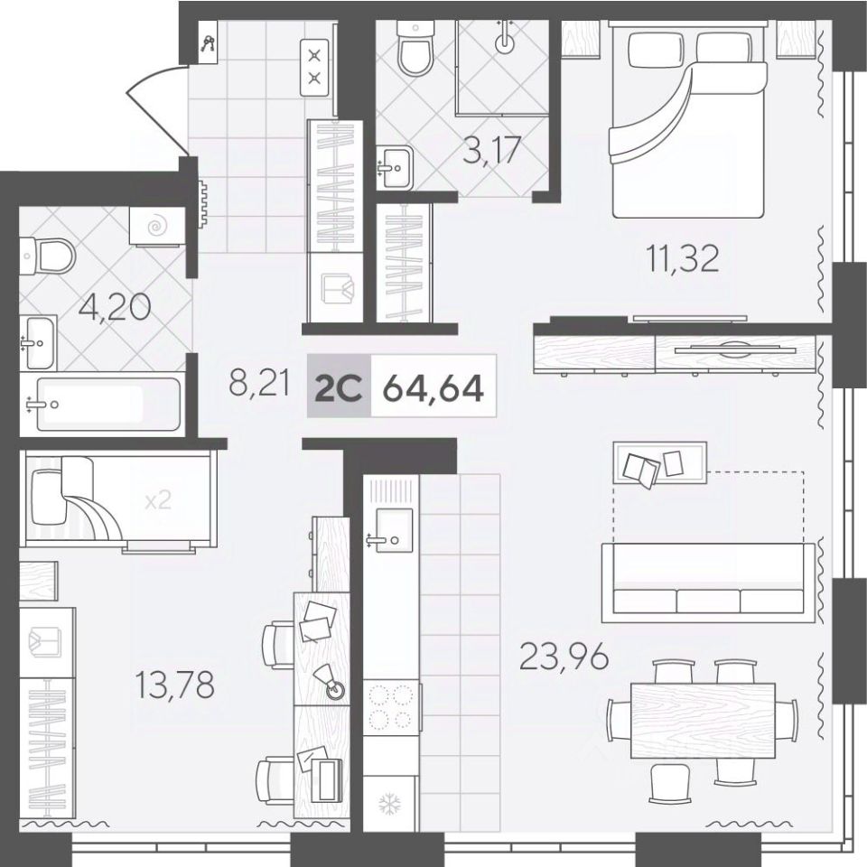 Продаётся 2-комнатная квартира в строящемся доме (ГП-5 (Свиридова, 11)), срок сдачи: II-кв. 2026, общей площадью 64.64 кв.м., на 3 этаже. Архитектура