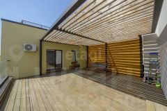 Просторная трехкомнатная квартира на последнем этаже с высотой потолков 3,20 м и продуманной планировкой. Кухня-гостиная объединена, что создает комфортное пространство для жизни и приема гостей. Особенность квартиры — панорамное окно в прихожей, обеспечивающее естественное освещение даже в этой зоне. Санузел оборудован окном, что редко встречается в типовых домах и добавляет комфорта. Главное преимущество объекта — просторная терраса площадью 44 кв. м, которую можно обустроить как зону отдыха с бассейном, шезлонгами или качелями.