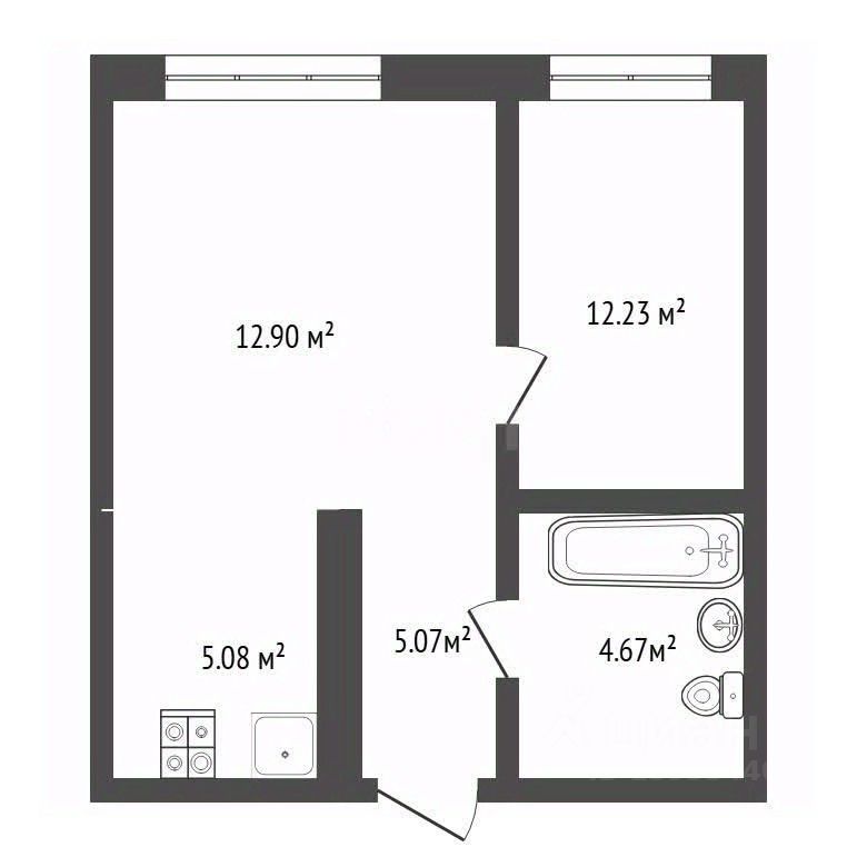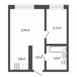 Общая площадь: 37,9 м².1-комнатная квартира с классической планировкой.