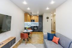 Предлагается к продаже квартира с готовым ремонтом, полностью оснащенная для комфортного проживания. Объект находится в отличном состоянии, все материалы и техника новые, ранее помещение не эксплуатировалось. Cовременный ремонт с использованием долговечных материалов: кварцвиниловые полы, однотонные обои и натяжные потолки. Продуманная система освещения и установленный кондиционер создают приятную атмосферу. Кухня укомплектована практичным гарнитуром со встроенной техникой: холодильник, плита, духовой шкаф и посудомоечная машина. В санузле установлена душевая кабина, инсталляция, система теплого пола, водонагреватель и стиральная машина. В спальне предусмотрена функциональная зона со встроенным шкафом. При продаже остается вся мебель и техника. Квартира расположена в районе с развитой социальной инфраструктурой — все необходимое для жизни находится в шаговой доступности. Благоустроенный парк в непосредственной близости от дома способствует отдыху и релаксации. Это решение для тех, кто ценит готовность к переезду без дополнительных вложений и хочет начать жить с комфортом сразу после заключения сделки.