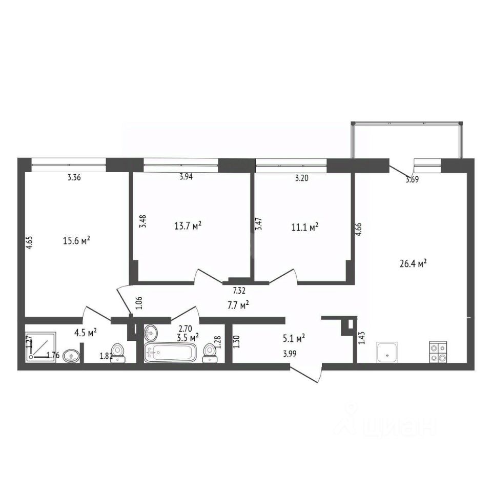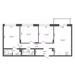 Продается 3-комнатная квартира формата 3+ площадью 83,3 кв.м., расположенная на 7 этаже 7-этажного дома комфорт-класса.