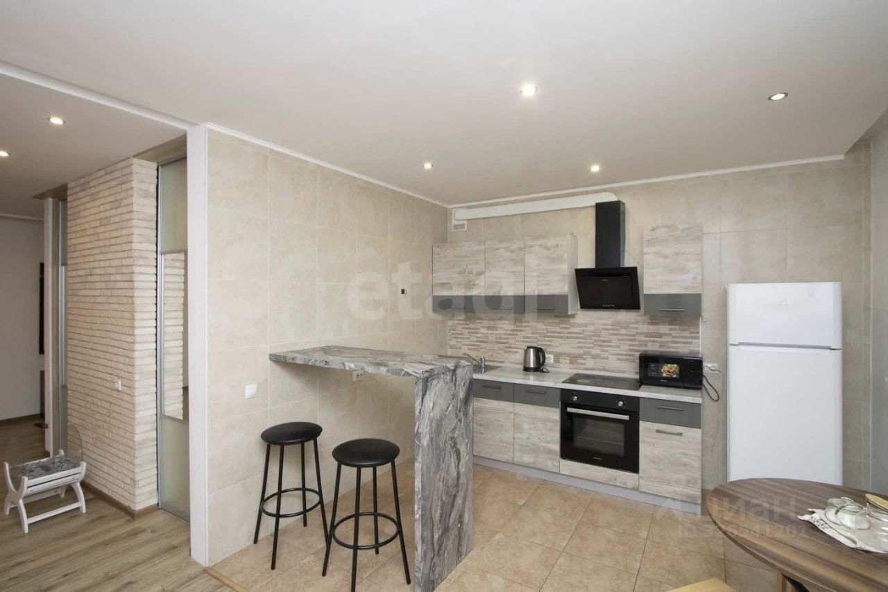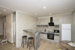 В квартире выполнен современный ремонт в приятных нейтральных тонах: на полу ламинат, натяжные потолки, с/у в плитке. Выделена зона кухни-гостиной и зона отдыха. Есть балкон с панорамными окнами. Вся мебель остается при продаже - вам не потребуется дополнительных вложений!