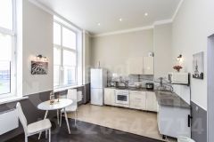 Простор и свет: Квартира формата 1+, высота потолков 3,5 метра, создающая ощущение простора и воздуха.