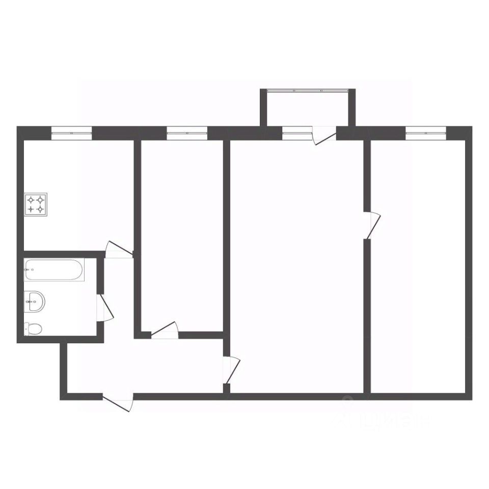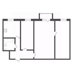 Комнатная планировка: две изолированные комнаты и просторный зал-проходной.