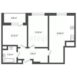 Квартира расположена на комфортном 10 этаже 19-этажного дома. Общая площадь составляет 52.9 кв.м.