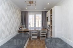 - Детская комната обустроена функциональной мебелью, столом и местом для занятий и отдыха ребенка.