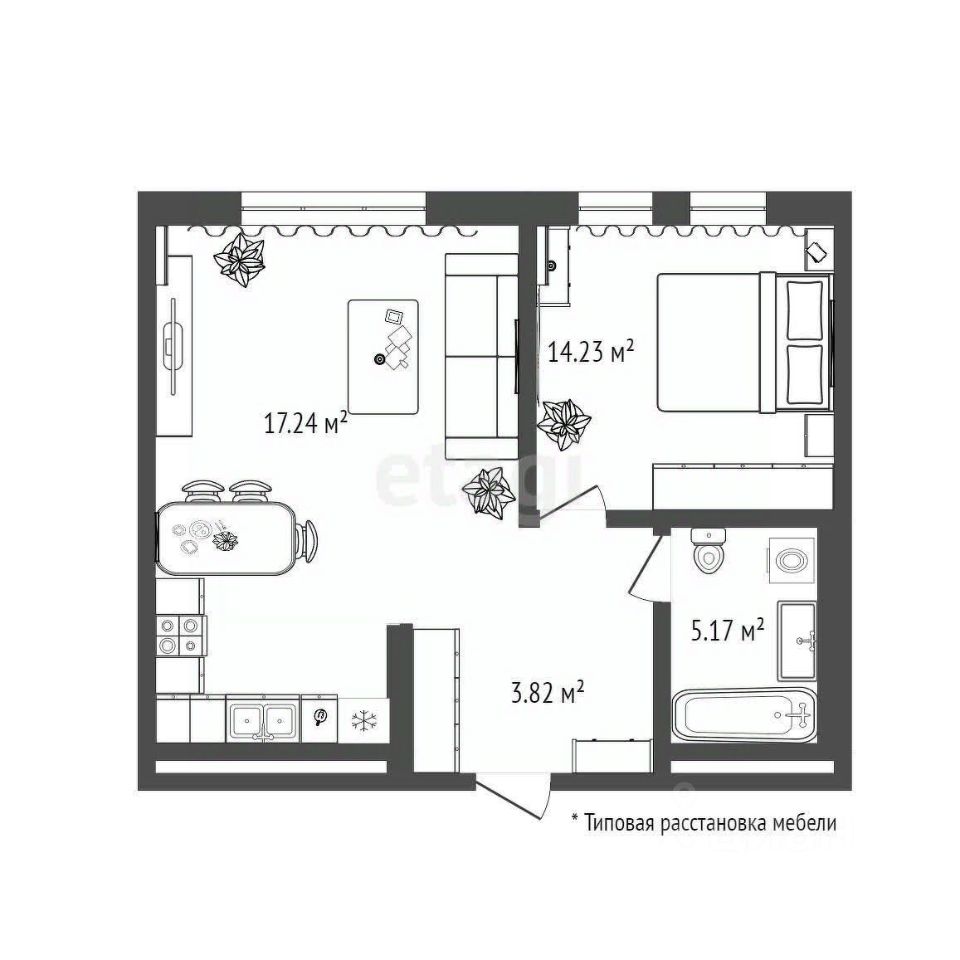 Эта евродвушка станет идеальным выбором для тех, кто ценит стиль, уют и комфорт. Просторная кухня-гостиная — сердце вашего нового дома, где сможете собираться с близкими и устраивать незабываемые вечера. Умное зонирование пространства, позволяющее максимально эффективно использовать каждый квадратный метр. Уютная спальня обеспечит вам полноценный отдых и спокойствие. Ремонт выполнен по эксклюзивному дизайн-проекту с использованием только высококачественных материалов, что создает атмосферу современного и функционального жилья.