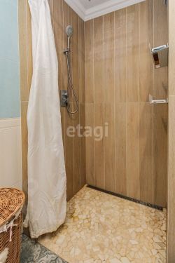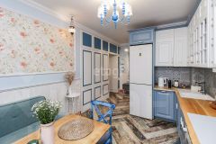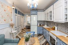 Во всей квартире, кроме ванной комнаты нет натяжных потолков, поэтому дышать в квартире Вам будет легко, отделка квартиры полностью из экологических материалов, преимущественно во всей квартире участвует дерево. Обои в интерьере привезены из Англии, таких вы не найдёте здесь, такие есть только в нашей квартире и у парочки семей в Англии. В квартире очень много мест для хранения, так как продумано абсолютно всё до мелочей, здесь Вам не придётся увозить шубу на лето на дачу, здесь предостаточно места.