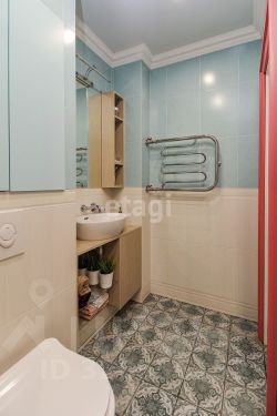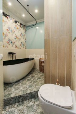 Ванная комната- это отдельная любовь! В ней есть раковина, инсталляция, вместительный шкафчик, тропический душ, отдельностоящая ванная. И это всё в квартире, представляете? И душ и ванная!