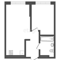 Объект предлагает рациональную планировку с объединенной кухней-гостиной и изолированной спальней, что создает комфортное пространство для жизни.